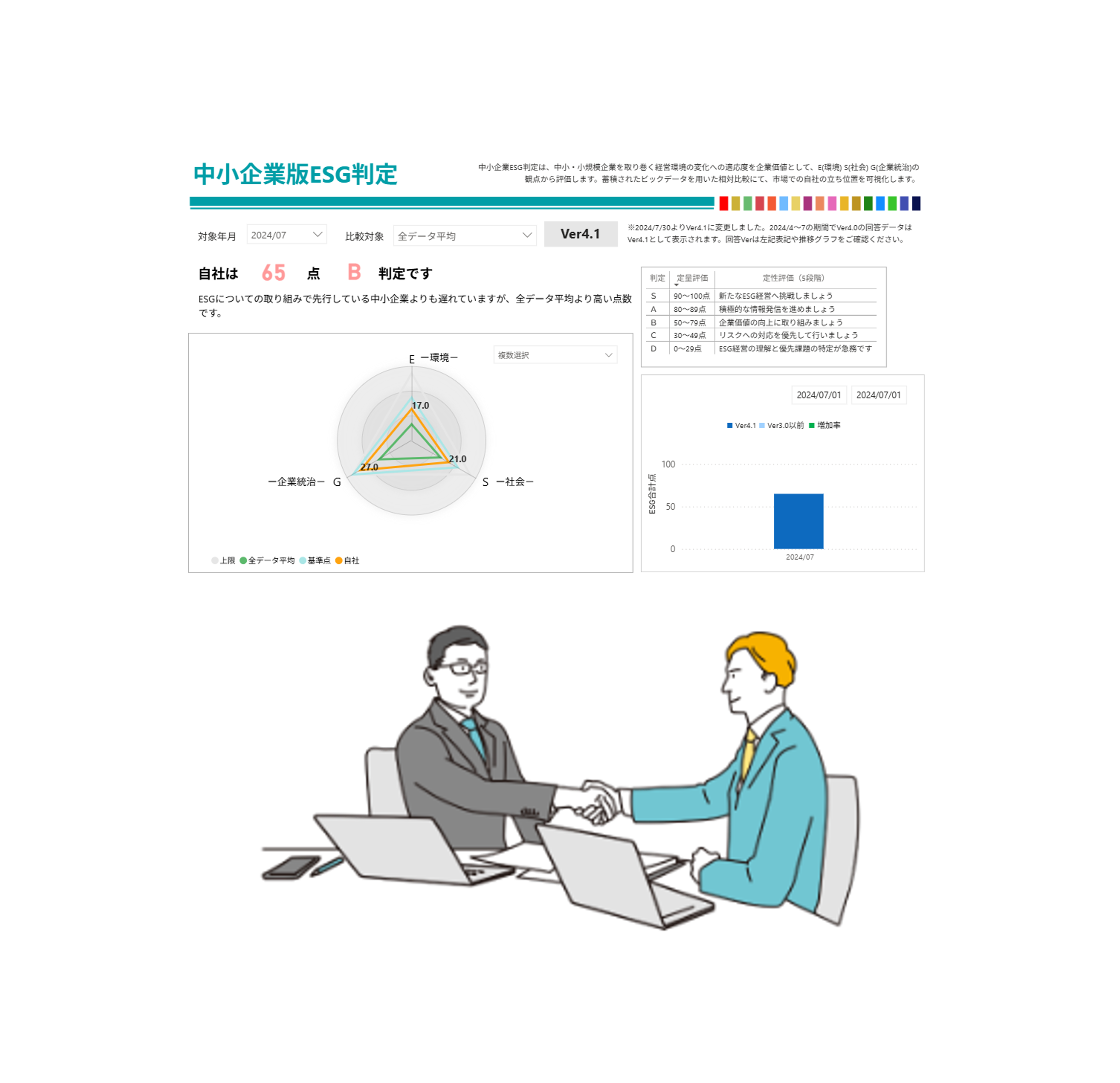 ESG判定では、E(環境)、S(社会)、G(企業統治)それぞれの取り組み度合いを数値化することができます。