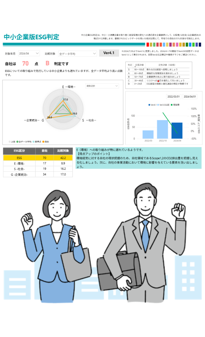 その結果、約2年後にはESG評価が70点へと大きく改善。
